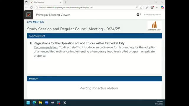 Cathedral City proposes 18‑month food‑truck pilot allowing limited private‑property operation with conditions