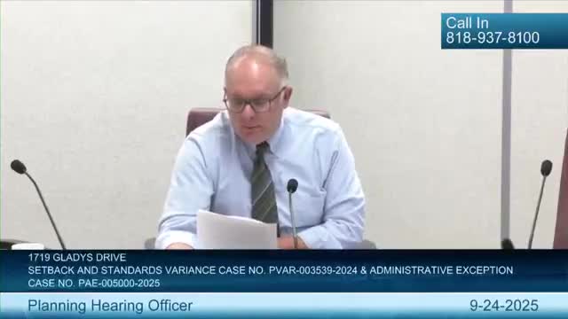 Glendale hearing takes testimony on variances for three‑story house at 1719 Gladys Drive