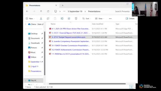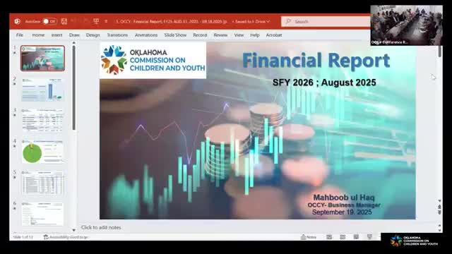 OCCY staff report 9% year-to-date utilization; commissioners approve financial report for FY2026