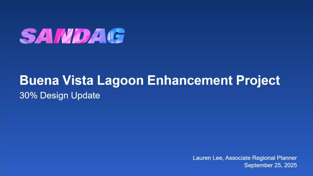 SANDAG reports 30% design complete for Buena Vista Lagoon enhancement; funding gap delays full design
