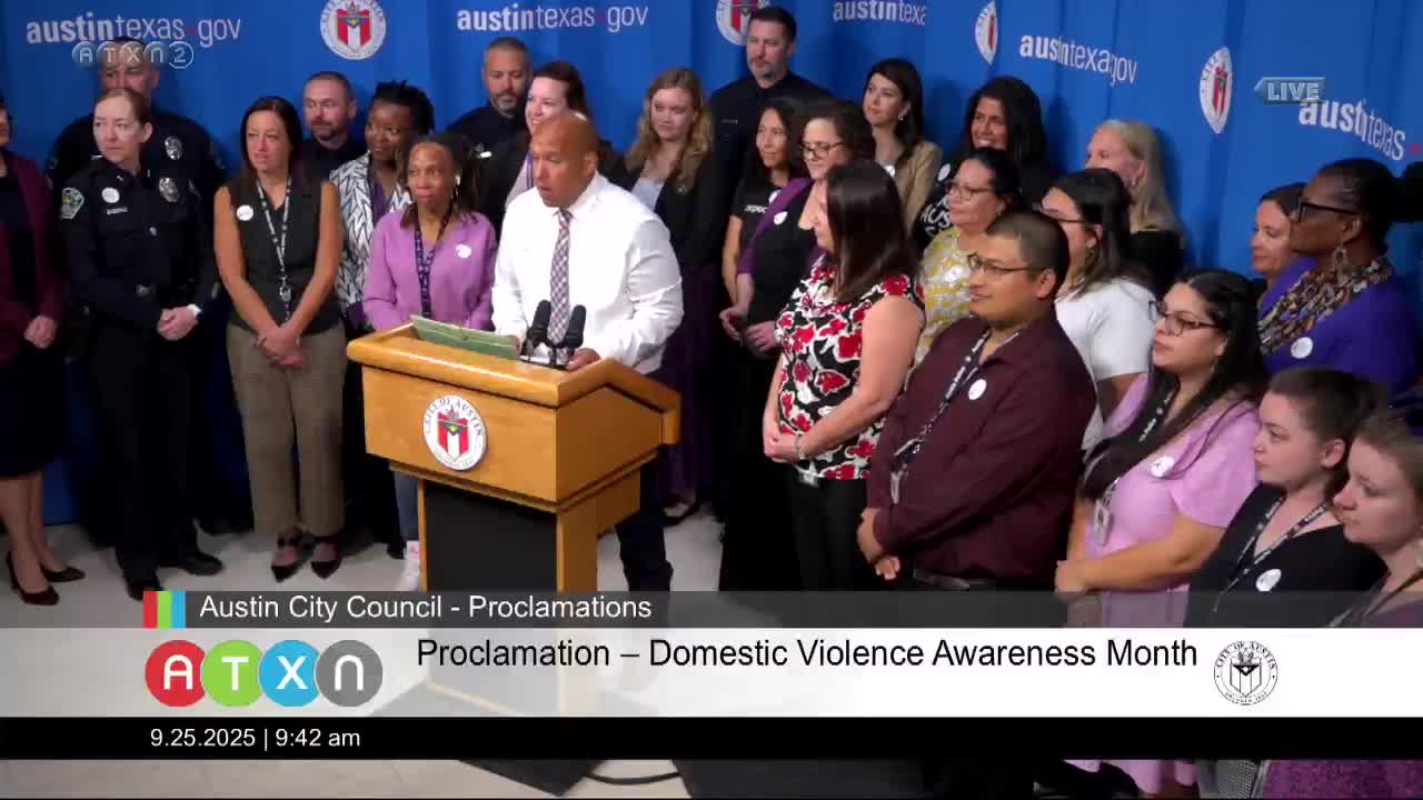Austin proclaims October 2025 Domestic Violence Awareness Month; advocates urge coordinated services