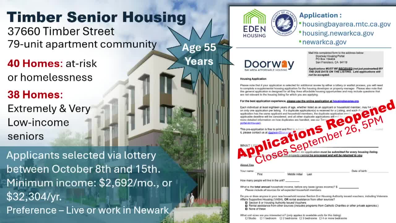 Eden Housing's 79‑unit Timber senior project to prioritize extremely low‑income and homelessness placements; application period closes