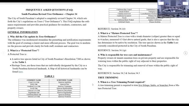Commission approves supplemental tree-ordinance FAQ; commissioners press for clearer definitions and urban-forest plan