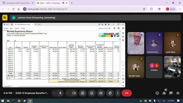 Sunnyside Unified trust hears Brown & Brown/Valley Schools report: early-year claims rise but presenters say premiums appear adequate