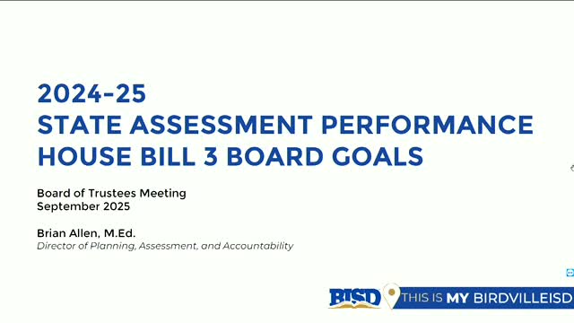 Birdville presents 2024–25 state assessment results; board updates long-term HB3 goals