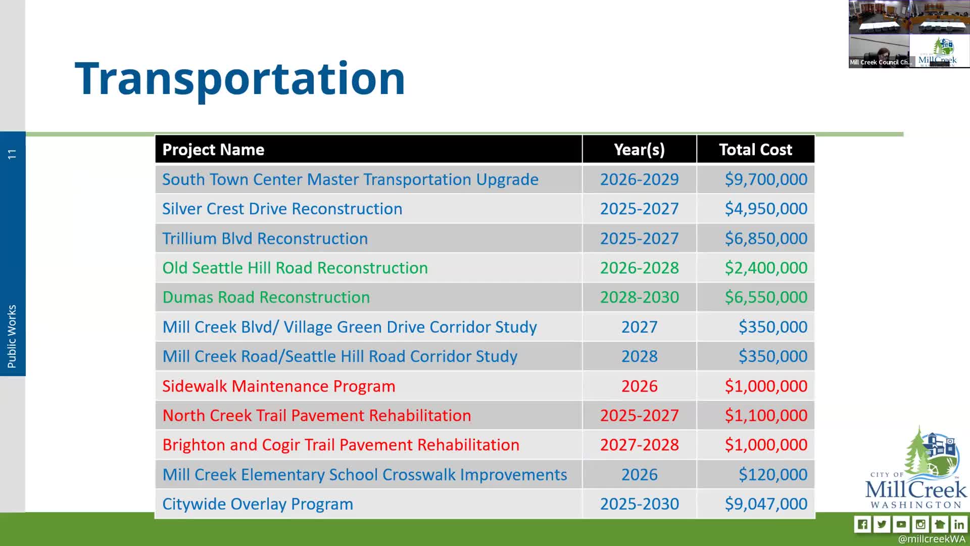 Mill Creek updates six‑year CIP; staff flags $50M gap and adds phase‑gate process