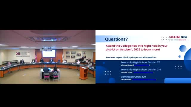 District 211 board hears College Now dual‑enrollment plan with Harper College; application opens Oct. 1