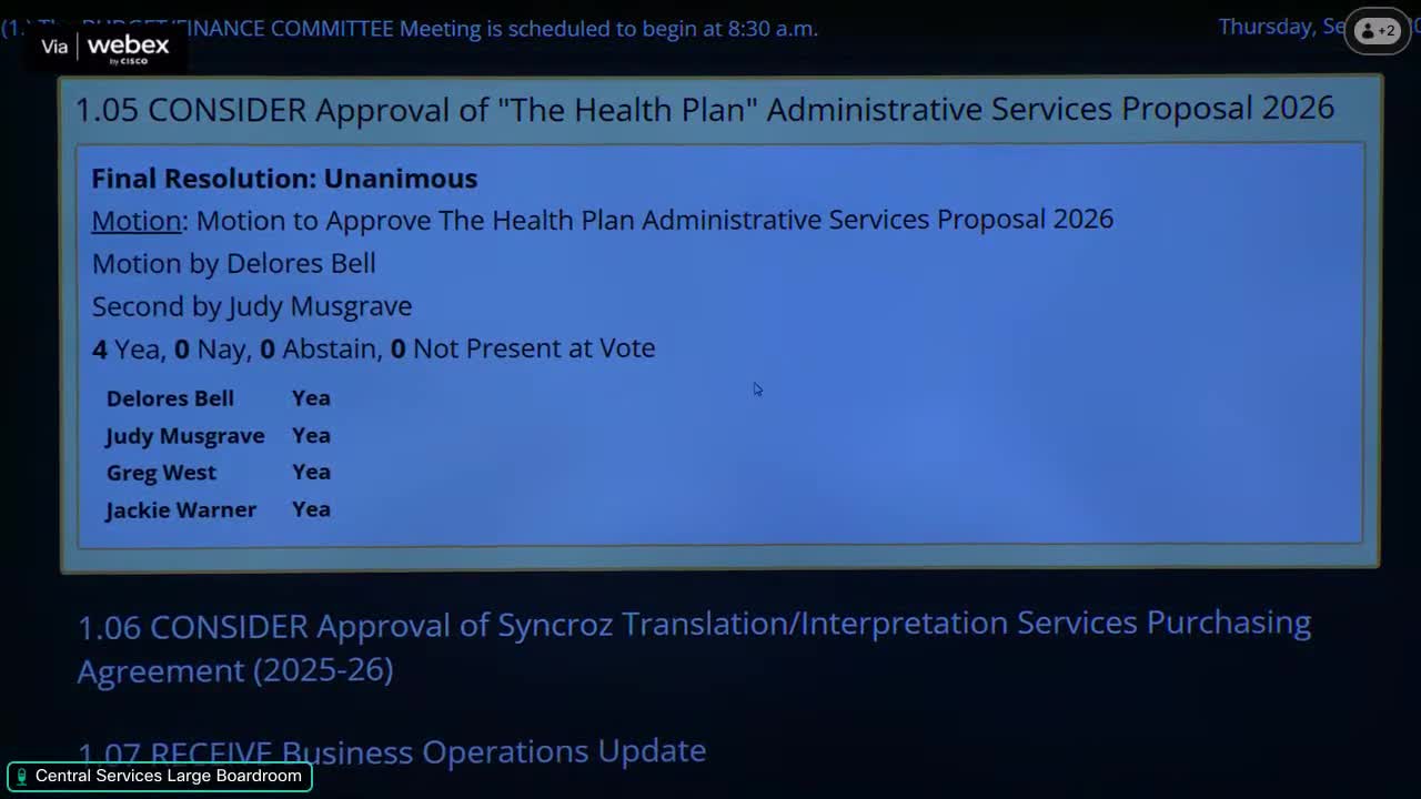 Board hears warnings about January paychecks, fast turnaround for health‑plan admin proposal
