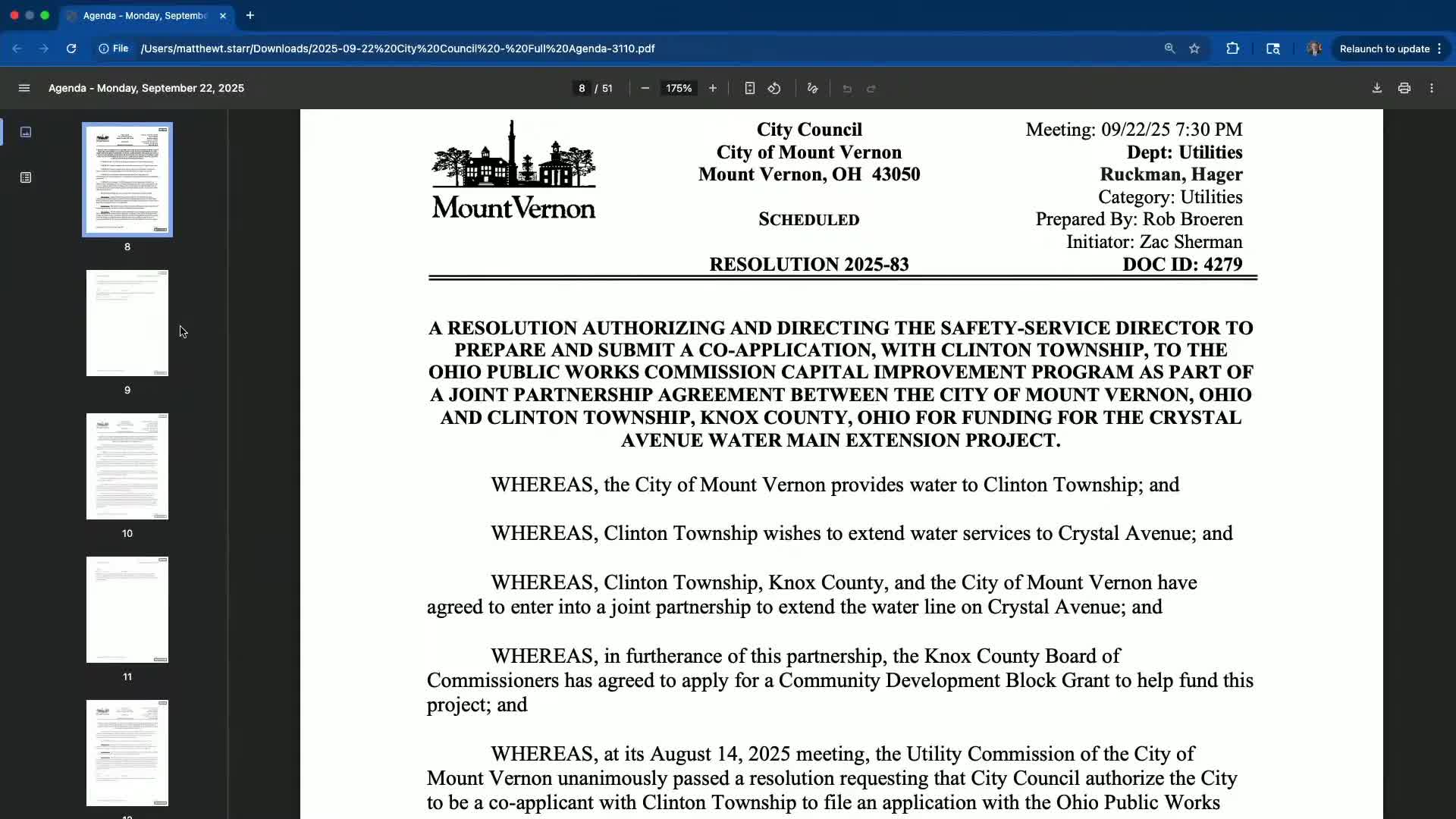 Council adopts resolution to apply for OPWC funding for Crystal Avenue water main extension