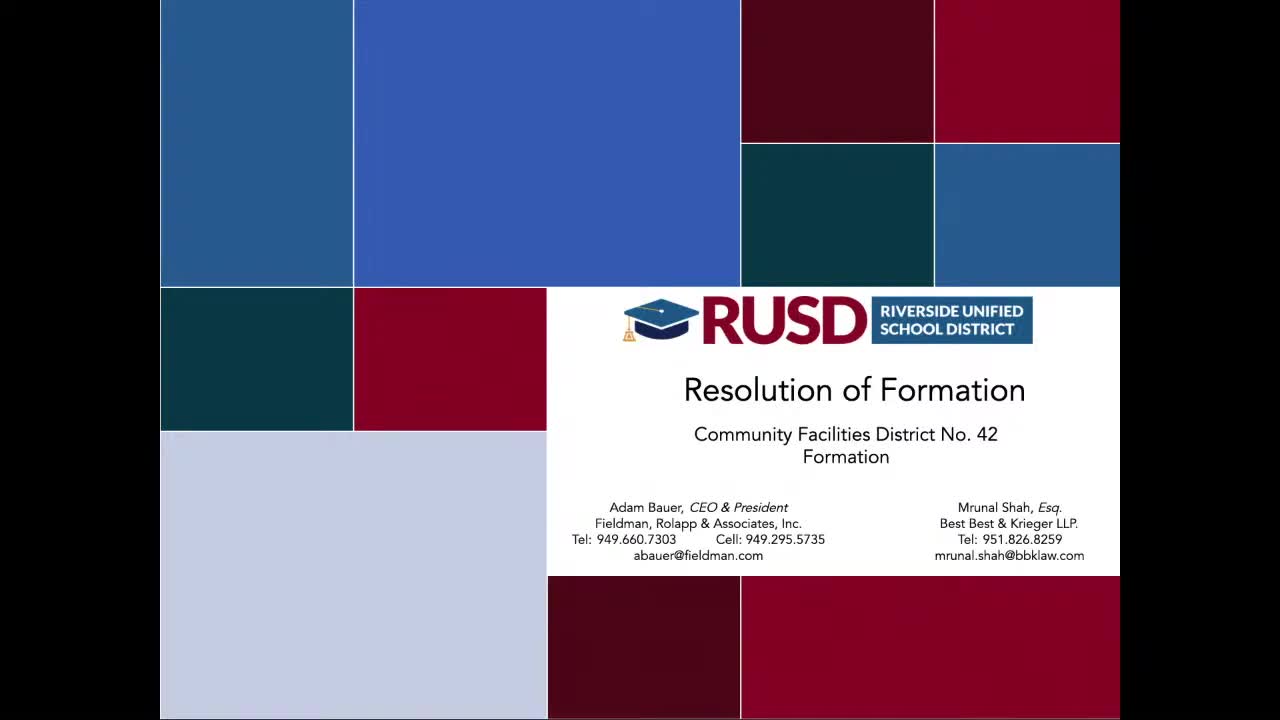 Board approves formation of CFD 42 and related bond authorizations for new housing development