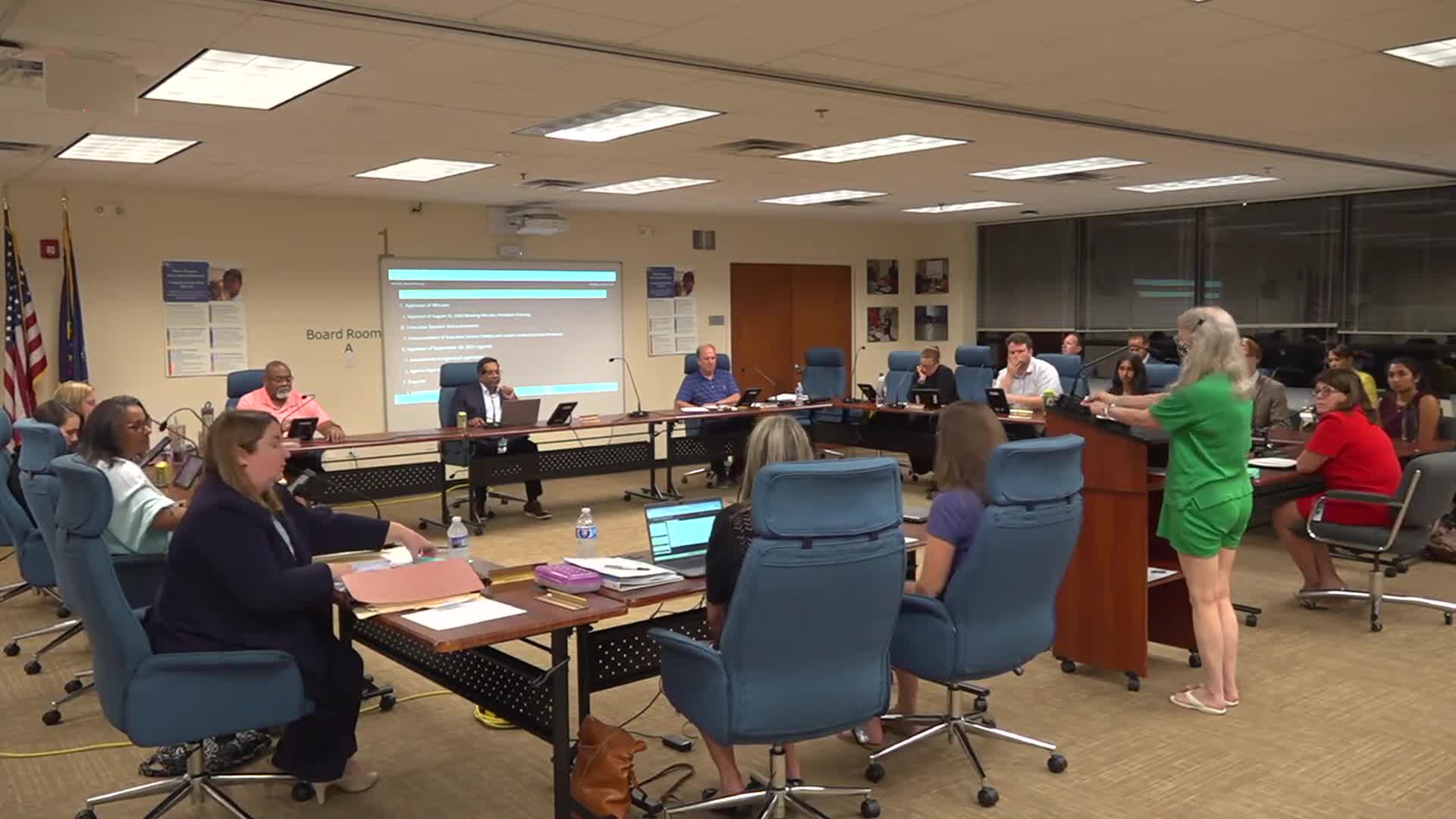 Public commenters raise concerns about policy wording, AED access and automatic fixtures in renovated bathrooms