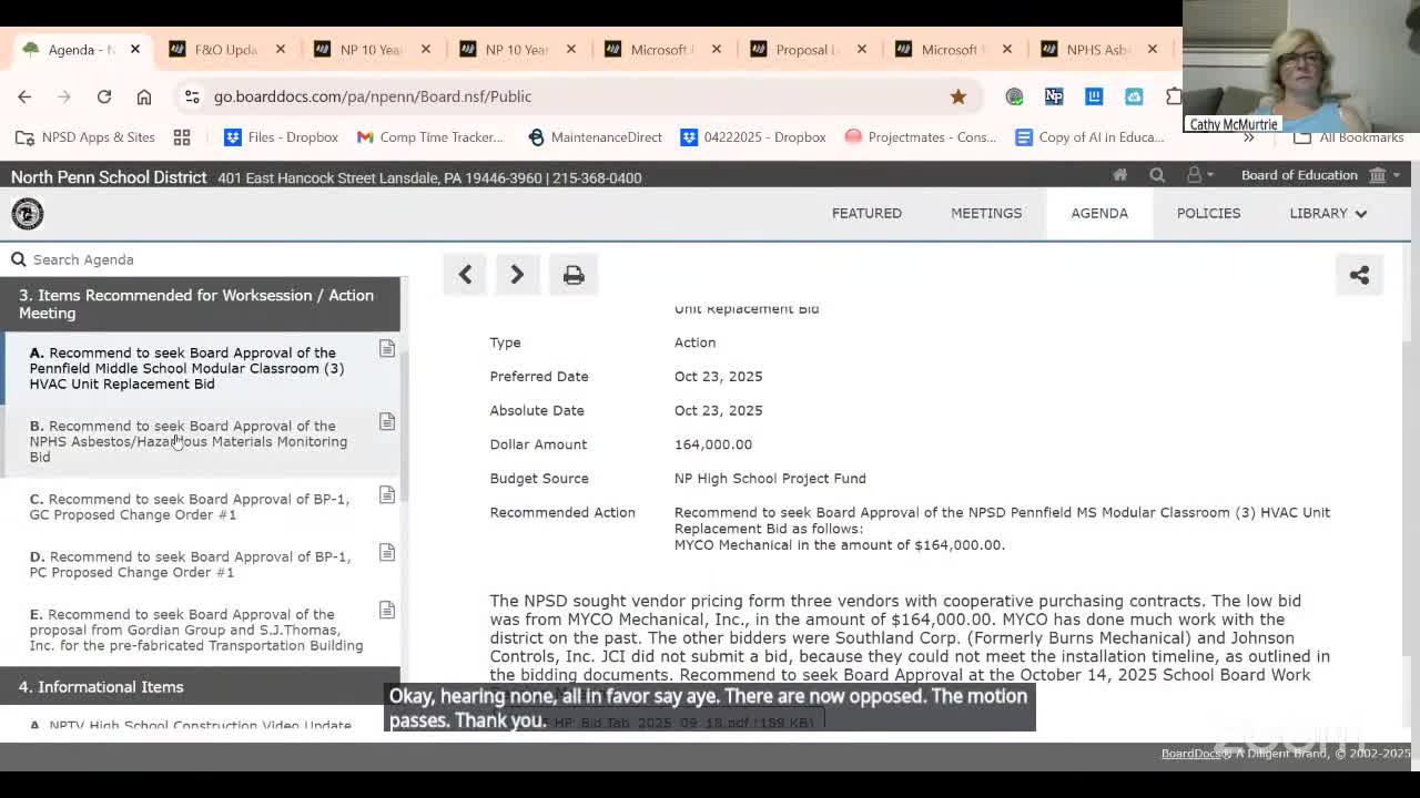 Committee recommends $122,814 award to Tetra Tech for asbestos and hazardous materials monitoring at North Penn High