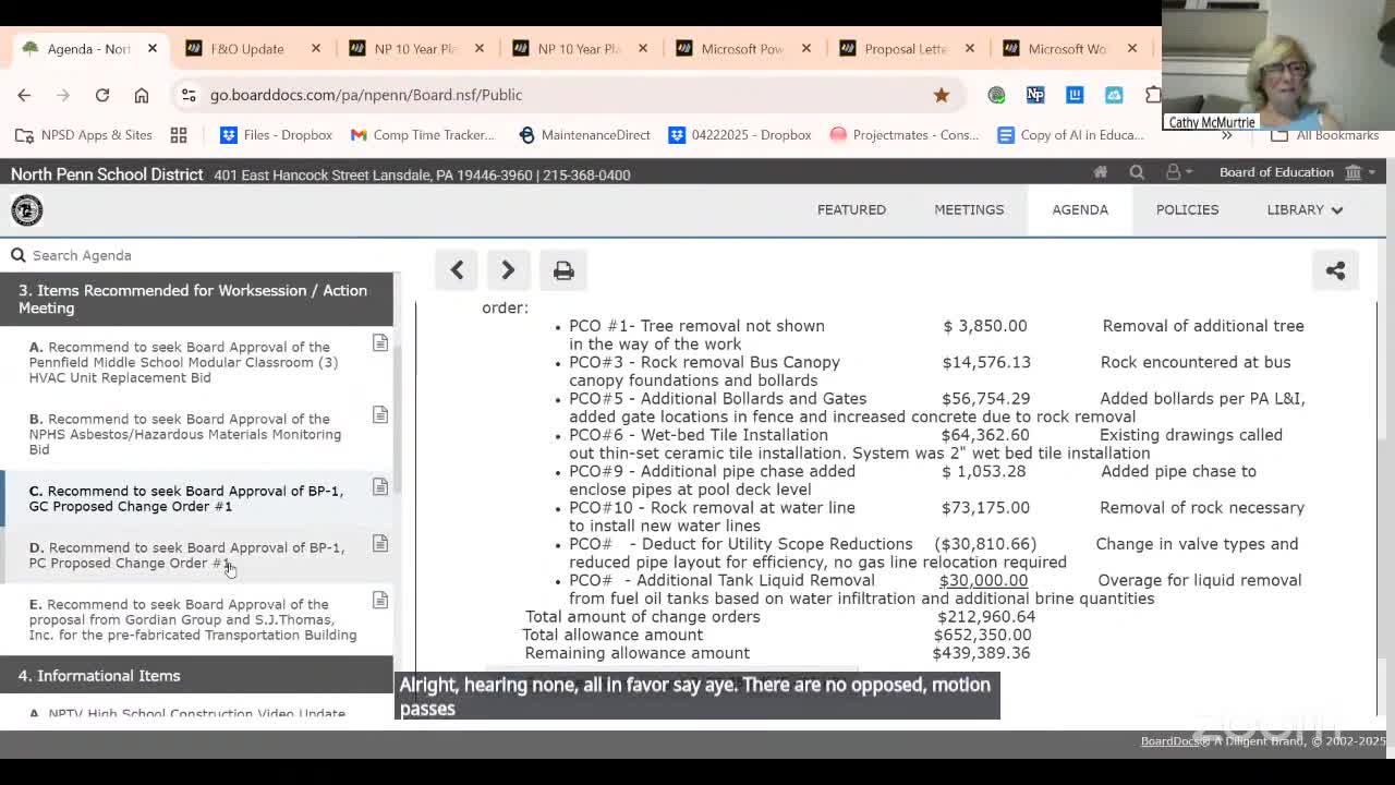 Committee backs $0-net change order for North Penn High bid package 1; $212,961 in work covered by allowances