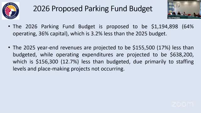 Board holds first reading of 2026 parking fund budget; capital projects and fee changes highlighted