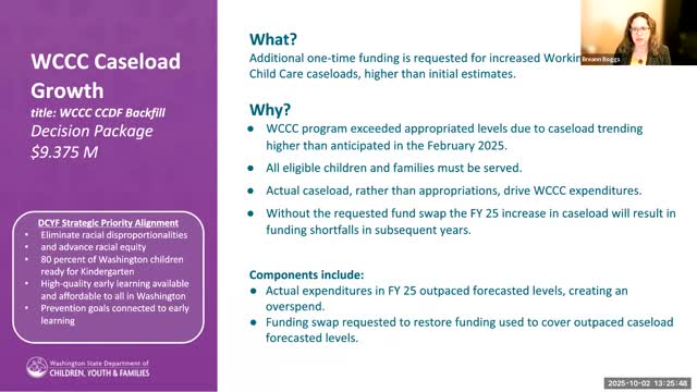 DCYF requests Working Connections backfill and delays expected savings from SB 5752 implementation
