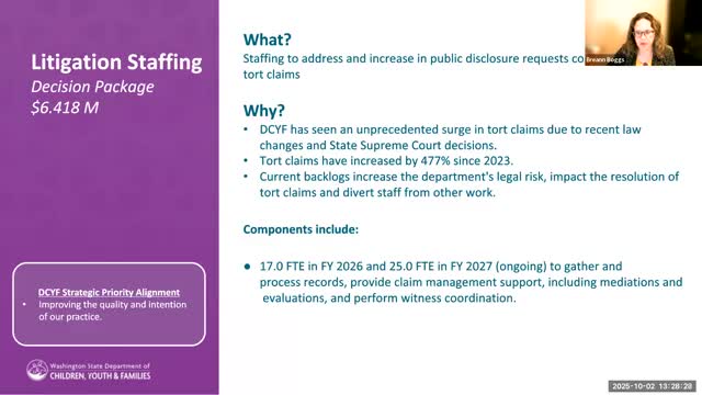 DCYF seeks staff for rising tort claim workload and asks for licensing and reporting statute cleanups