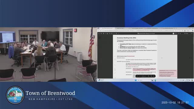 Brentwood planning board refines ADU ordinance to match state law, debates size, parking and enforcement