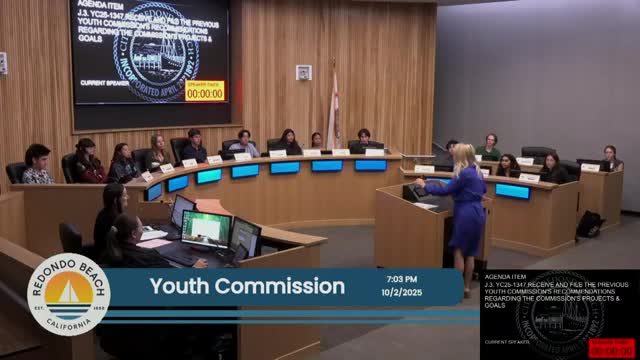 Redondo Beach Unified School District board member offers liaison support; commission receives presentation