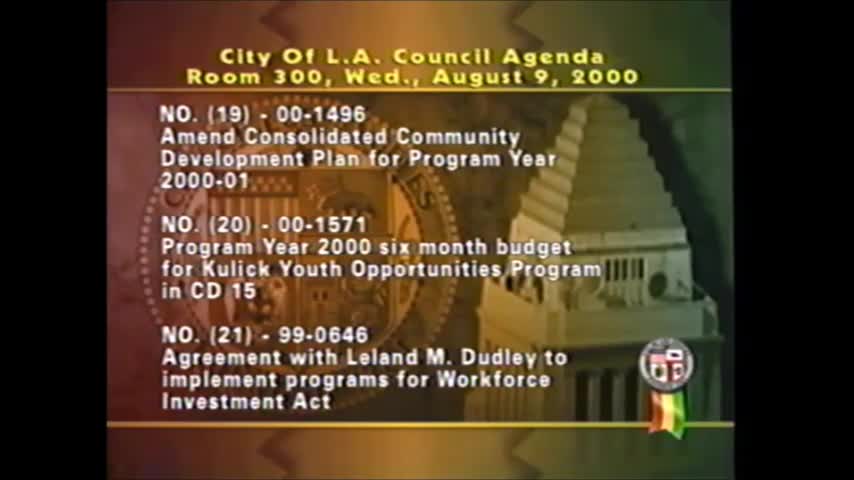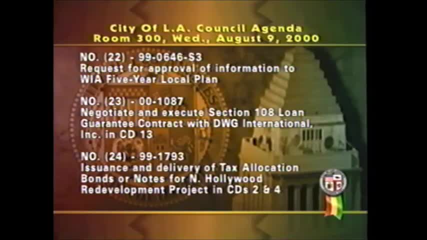 Votes at a glance: confirmations, appointments and land-use actions — Aug. 9, 2000 Los Angeles City Council