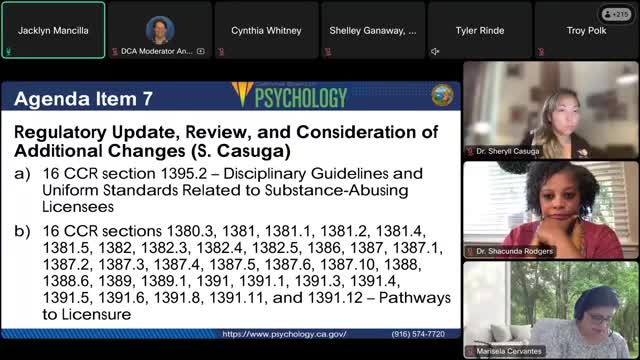 Committee hears status update on regulatory packages including pathways to licensure and telehealth standards