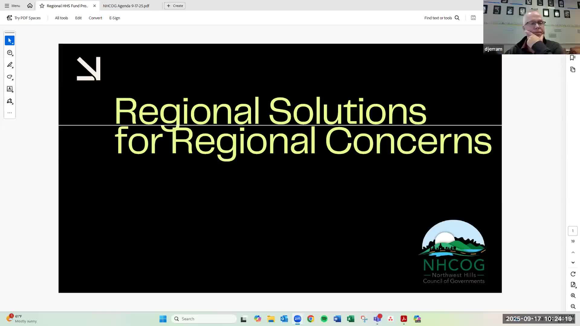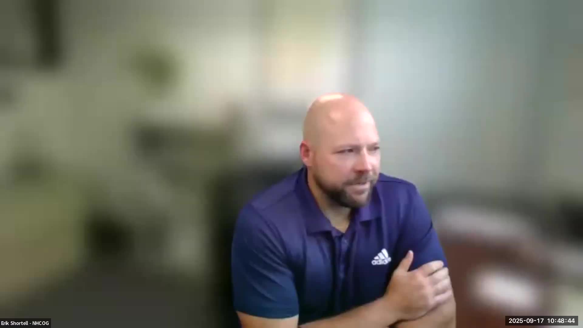 NH COG executive director reports GIS vendor progress, $210,000 EDD award and upcoming regional events; administrative motions noted