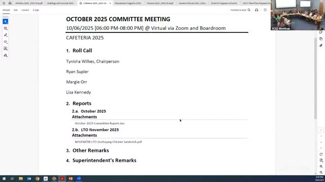 Cafeteria report: no health violations, commodity deliveries tracked; district seeking food‑service hires