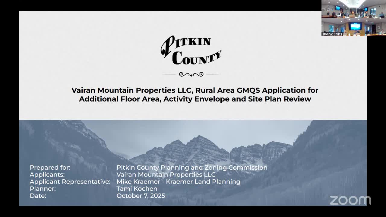 Pitkin County P&Z approves 3,500-sq-ft GMQS allotment and site plan for Varian Mountain Properties with conservation commitments