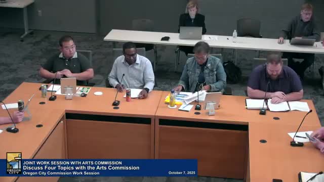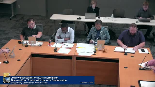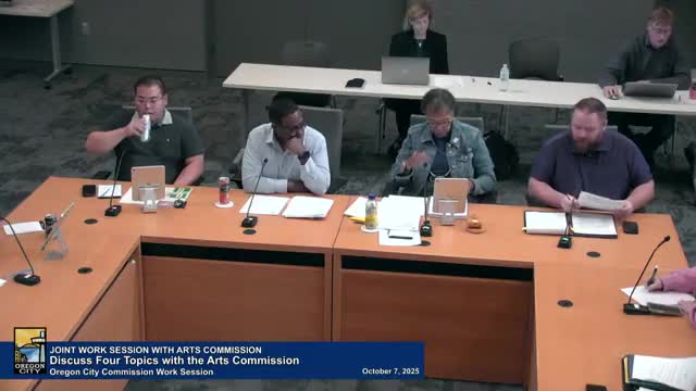 Oregon City staff and arts commission discuss municipal-code updates for Arts Commission membership and new mural rules, including AI guidance