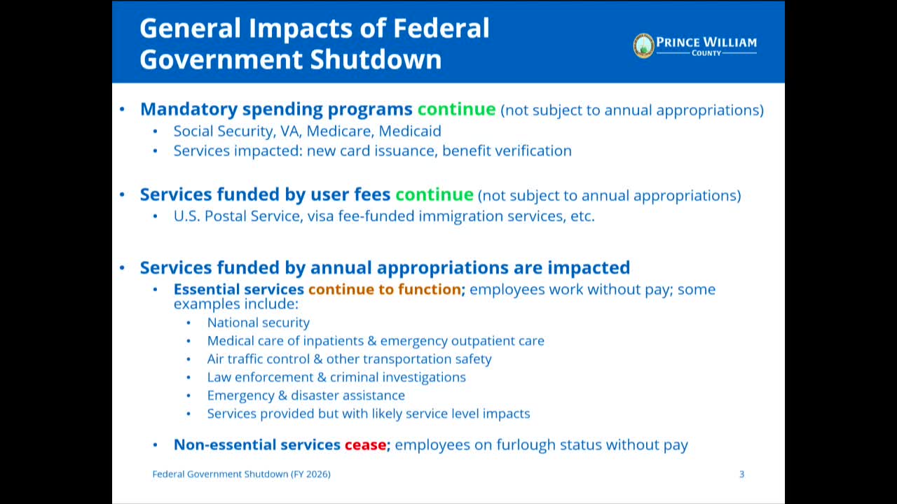 Prince William staff brief supervisors on local fallout from federal shutdown: schools, housing and SNAP at risk