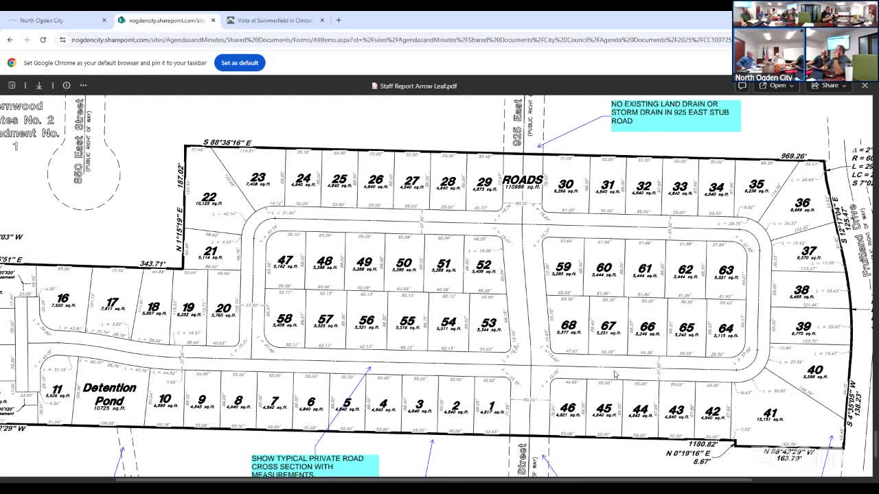 Council hears developer presentation on proposed Arrowleaf Meadows infill subdivision; staff flags wetlands, stormwater and HOA issues