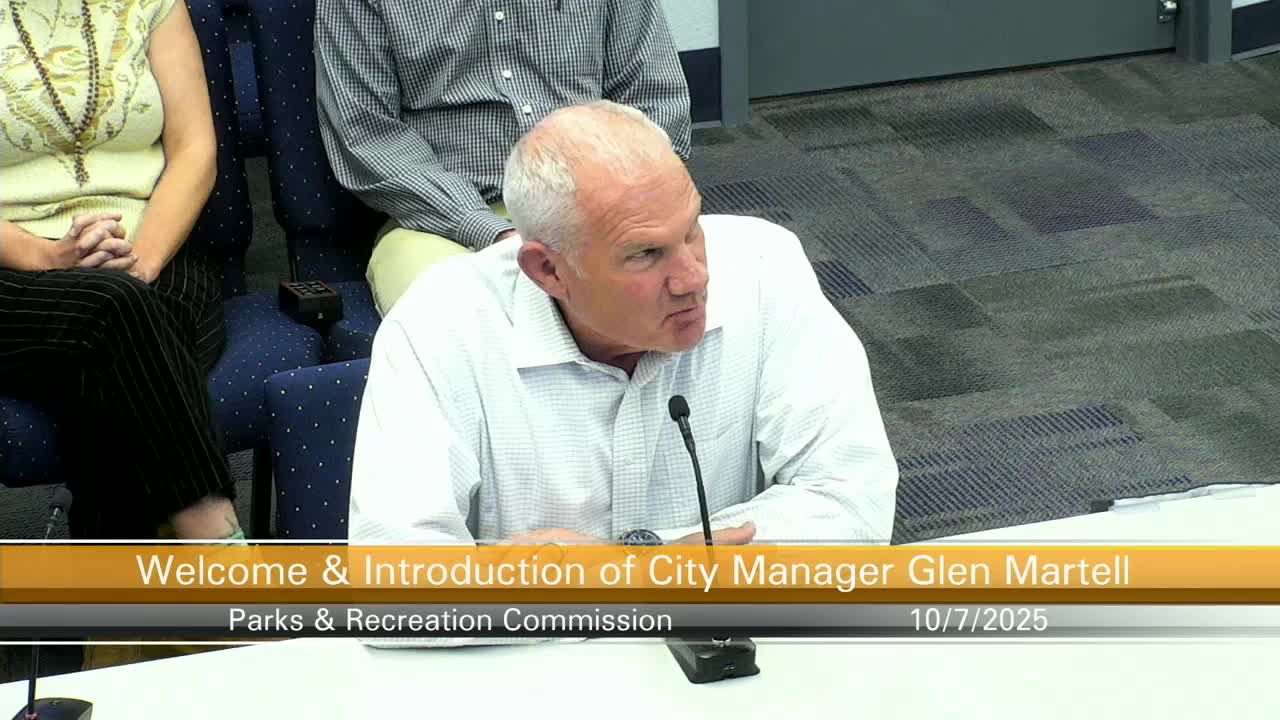 New city manager Glenn Martell introduced to Parks Commission; emphasizes community partnerships and volunteerism