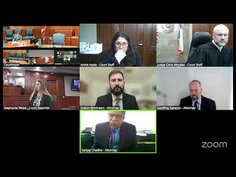 The next scheduled hearing on the application for foreclosure is Monday the 13th at 1:30 p.m.; counsel were told to appear in person except for one party specifically allowed to join by Zoom.