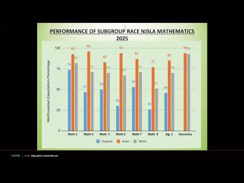 "This evening, I'm gonna share with the board the annual report of student performance," Casey said, opening the presentation and saying the report focused mainly on NJSLA results but also covered extracurricular accomplishments.