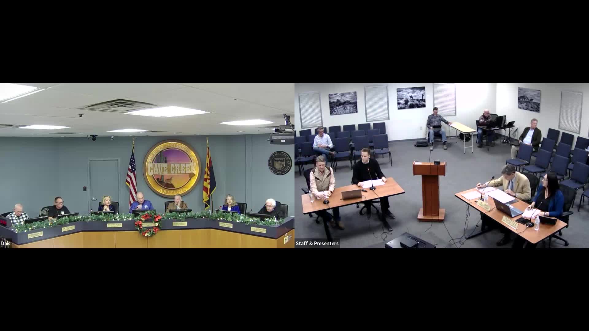 Council approved two ordinances (one amending residential regulations, one amending commercial-zone accessory-use rules) on voice votes; both passed 7–0. Council members discussed the local character and limited expected impact given Cave Creek’s lot-size patterns. No public comments were recorded on the items during the meeting.