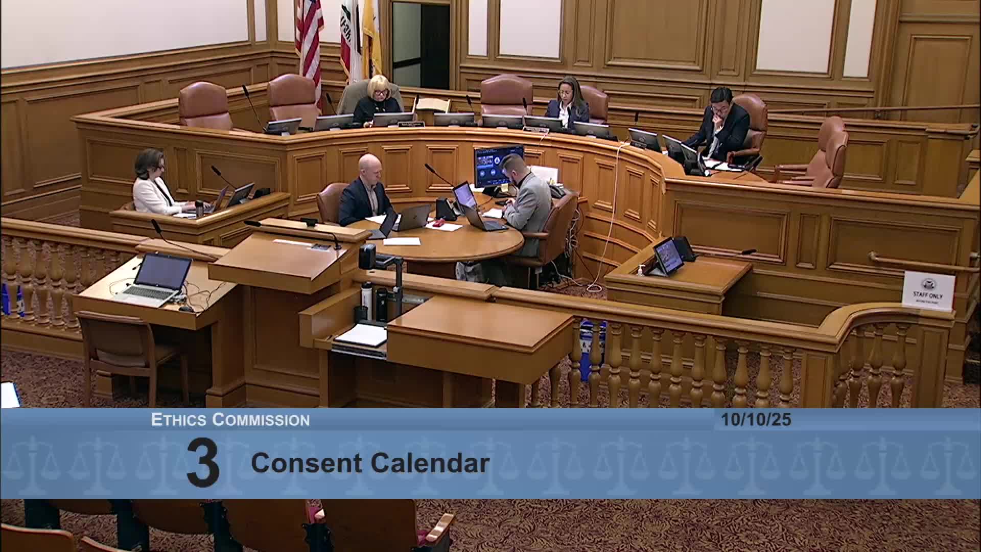 The San Francisco Ethics Commission on Oct. 10, 2025, discussed an ordinance that would allow members of the Board of Supervisors to request behested‑payment waivers and voted 3‑0 to continue the item for further consideration.
