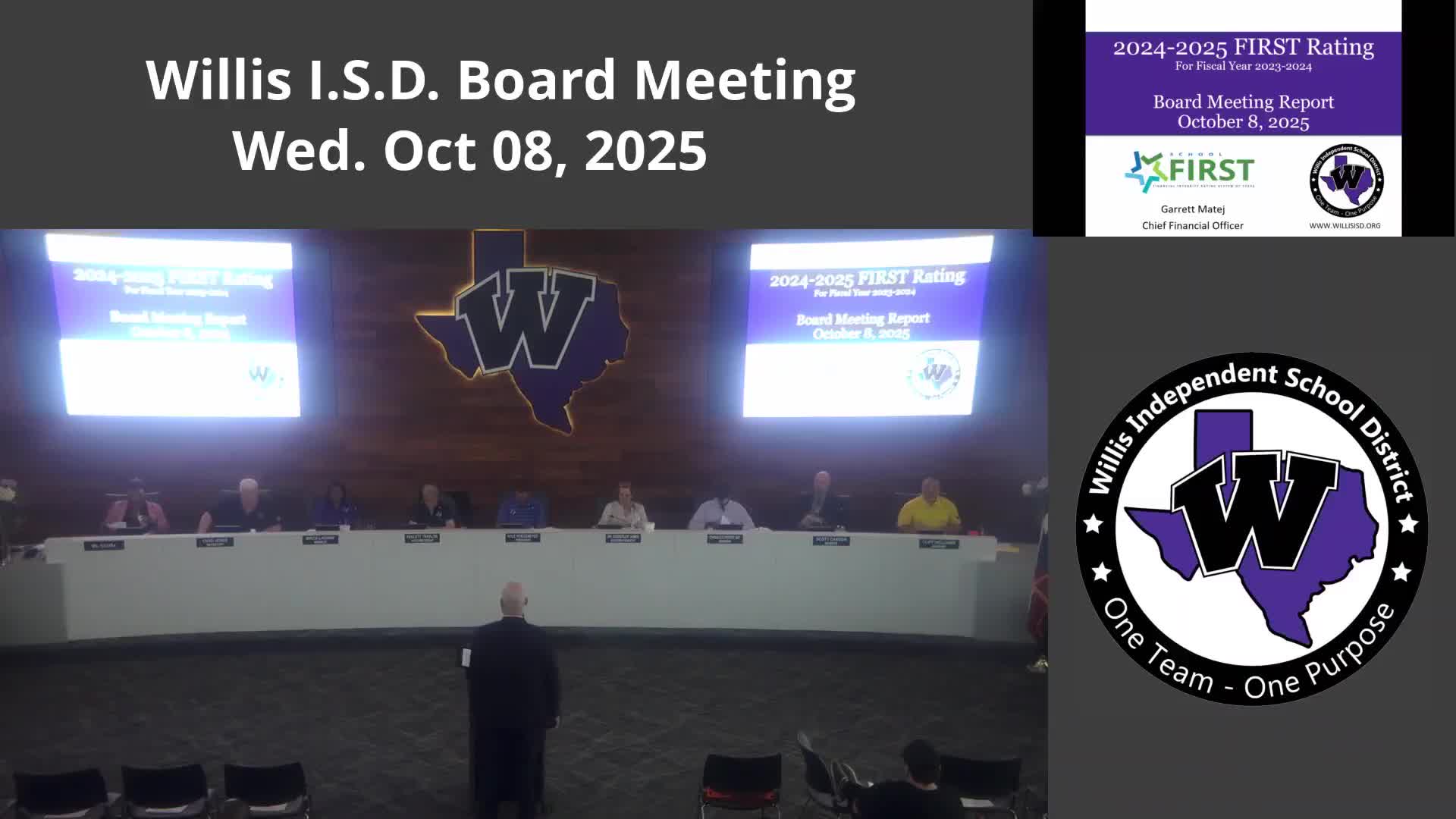 Willis Independent School District scored 98 out of 100 points — a “superior” rating — on the state'mandated School Financial Integrity Rating for the 2023'24 audit year, Chief Financial Officer Garrett Monde told the board on Oct. 8.
