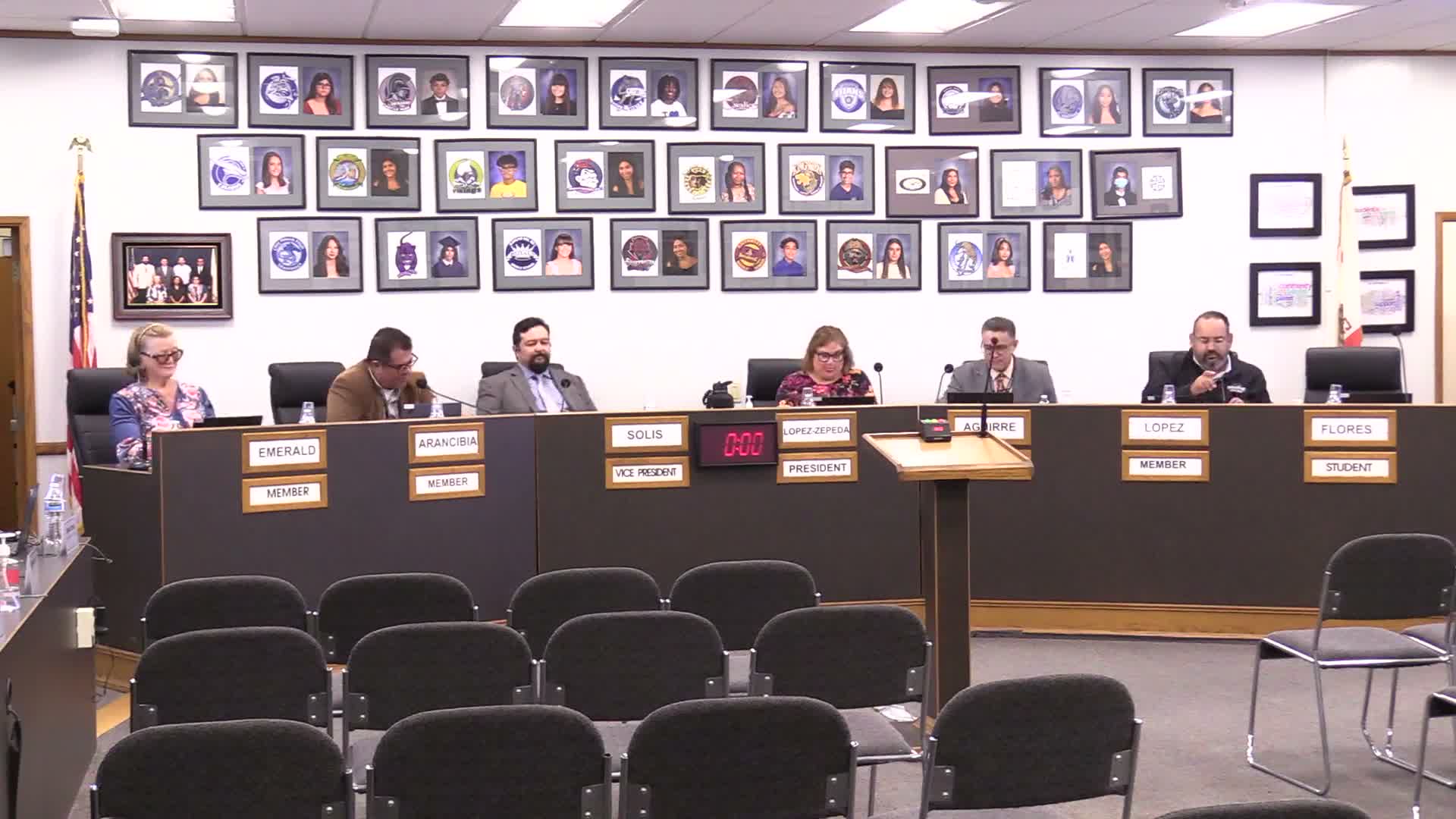 The presiding officer said recordings of the meeting would be made available so the public can review proceedings and noted a time limit for speakers during the period described in the transcript; the presiding officer stated a two-minute limit for each speaker. The board then recessed into closed session specifically citing existing litigation pursuant to Government Code section 54956.9(d)(1) and citing Government Code section 54957 for personnel matters. The public portion of the transcript does not include details about the litigation or personnel items, nor does it record any open-session vote on those matters.