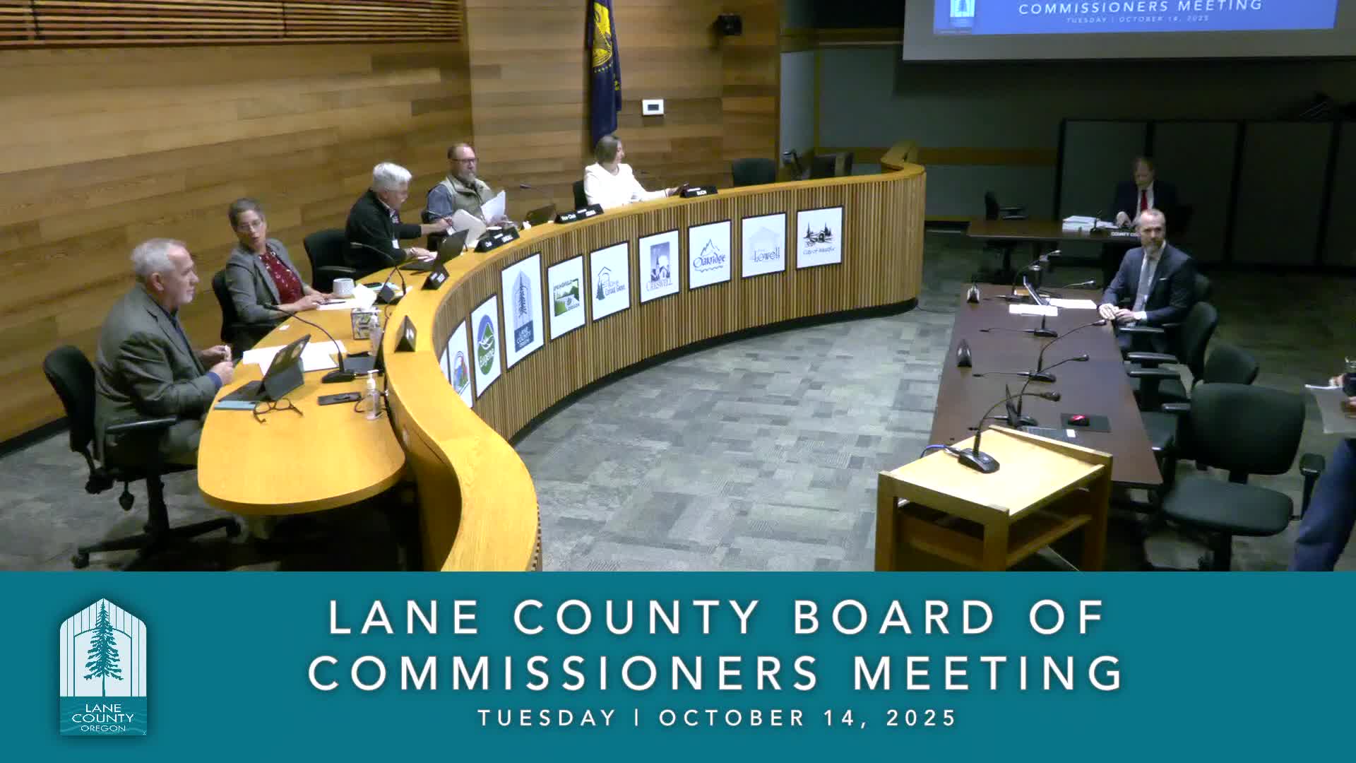 The Lane County Board of Commissioners on Oct. 14 held a public hearing on proposed amendments to Chapter 16 of the Lane Code to add clear-and-objective standards for housing in rural residential overlay zones; the board kept the record open for written comments through Oct. 28 and continued deliberations to Nov. 4.