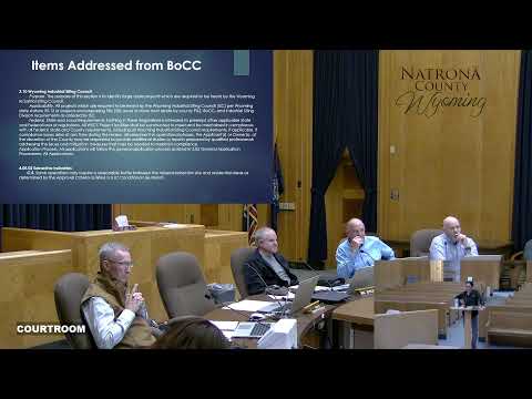 Commissioners also questioned language about the Industrial Siting (siting/siting-council) process and whether some projects should go first to the state Industrial Siting Council (ISC). Sabrina said state statute (cited in the presentation as "35-12") governs the ISC process and that sending an application to ISC first could forfeit local notice and certain local regulatory steps. She said the draft preserves opportunities for local comment during ISC review and that staff had spoken with other Wyoming counties about concurrent coordination with ISC agencies.
