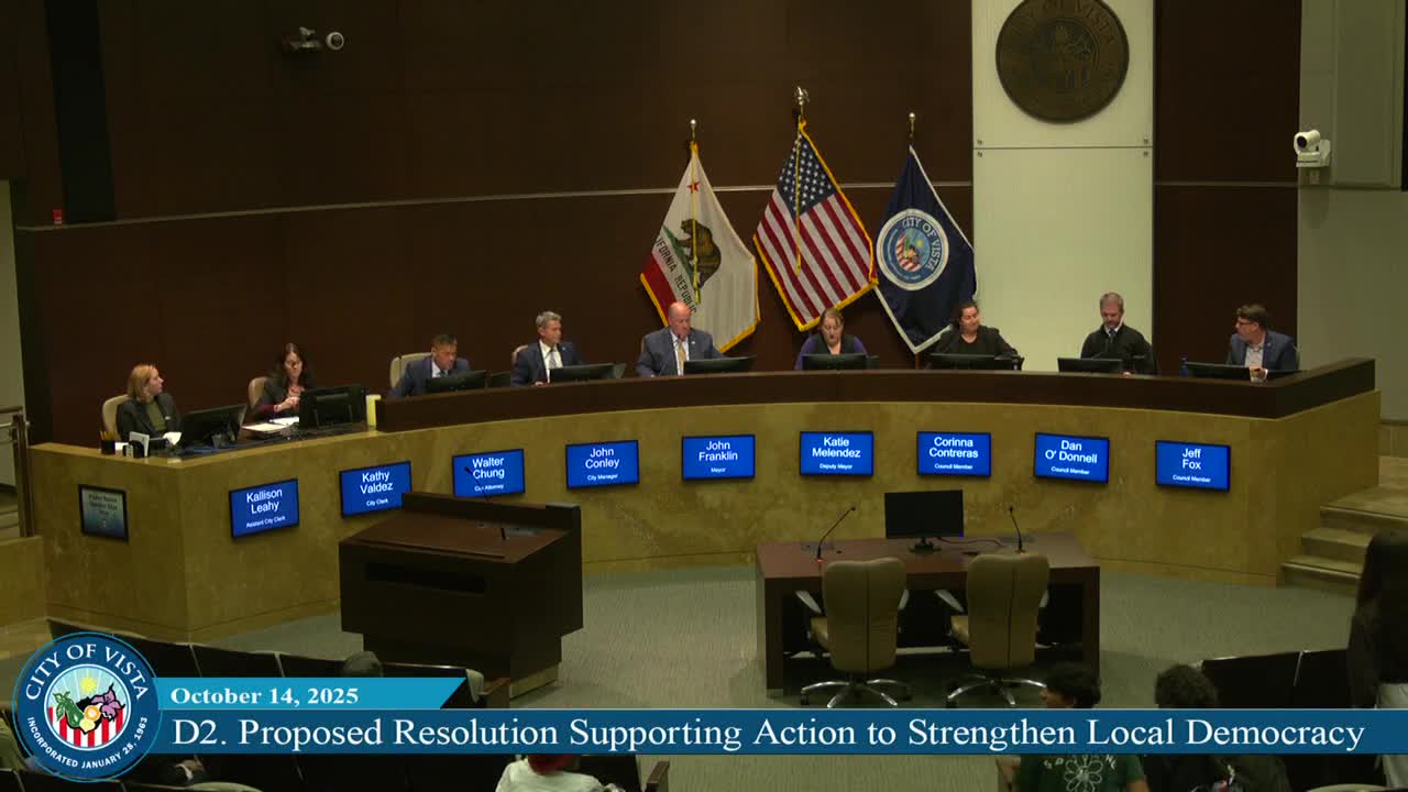 The Vista City Council on Tuesday approved a resolution expressing opposition to what the council described as repeated state legislation that reduces municipal control over zoning and housing decisions.
