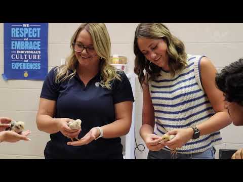 Student 3 described hands-on elements of the courses, saying, “My favorite part is doing hands on things with other students such as working with the microscope or out here. You have the garden right there and the chickens, and you can feed the chickens, come pet the chickens, do whatever you want, and just learn about all the wildlife.”
