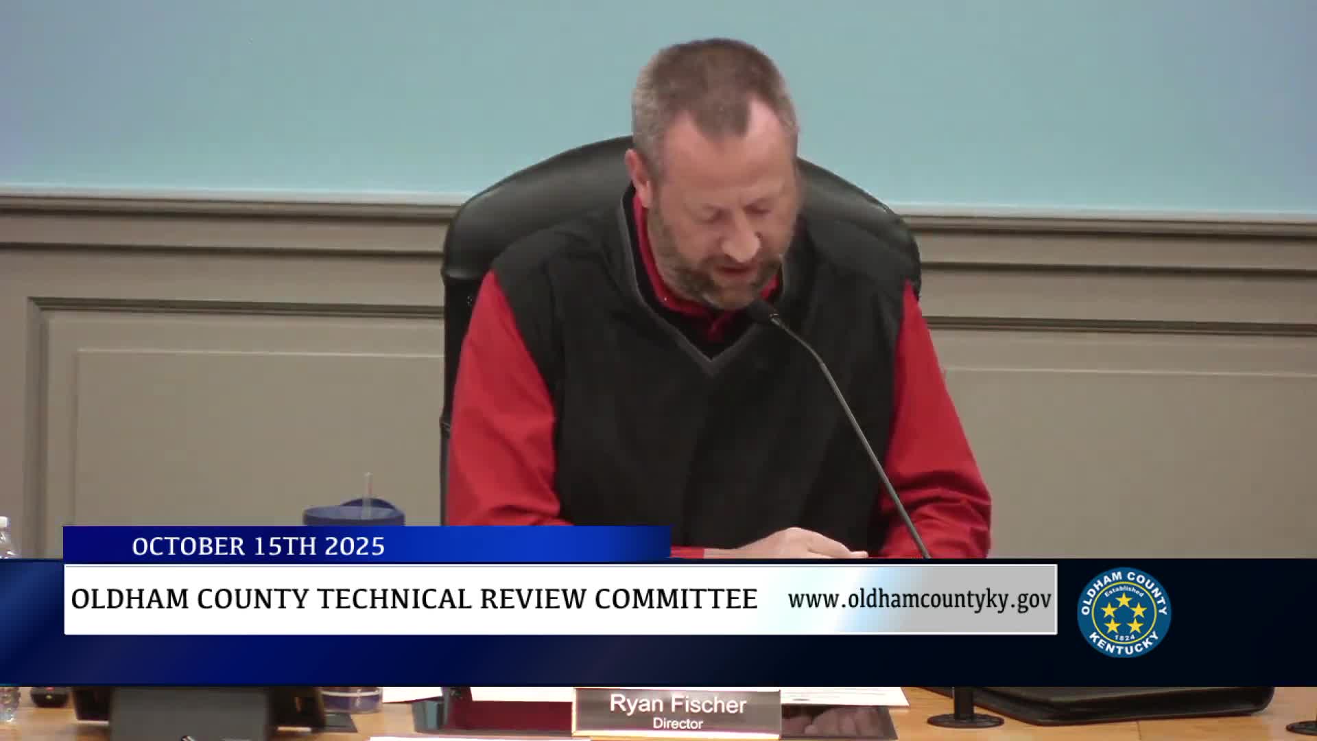 The Oldham County Technical Review Committee on Oct. 15 reviewed TRC25-018, a proposed 64-lot subdivision called Camden Ridge at 2800 South Camden Lane, but took no official vote and made no decisions. County staff, the applicant and more than a dozen nearby residents spent the meeting discussing required permits, drainage and stormwater controls, road safety and connectivity, potential impacts to a nearby dam and lake, and school-capacity estimates.