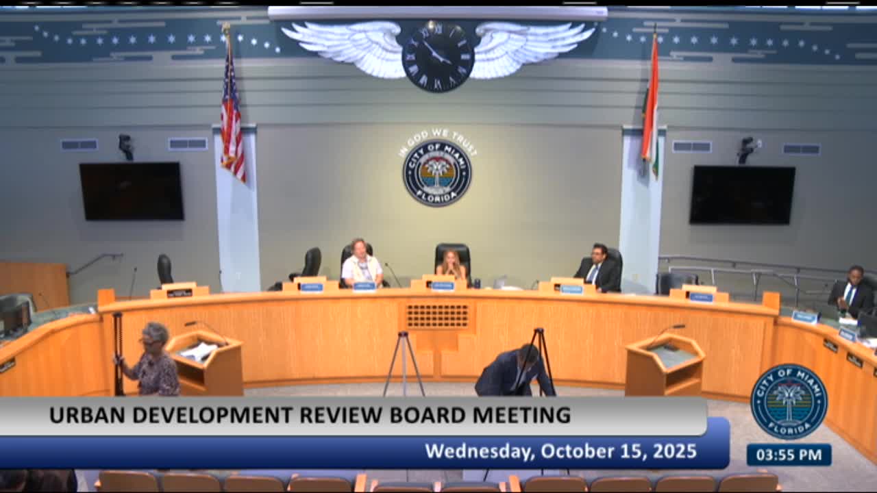 The Urban Development Review Board approved a 55‑story Live Local project in Southeast Overtown that proposes 498 residential units and a podium with amenity decks, subject to three conditions that the board said will strengthen the project's relationship to the street.