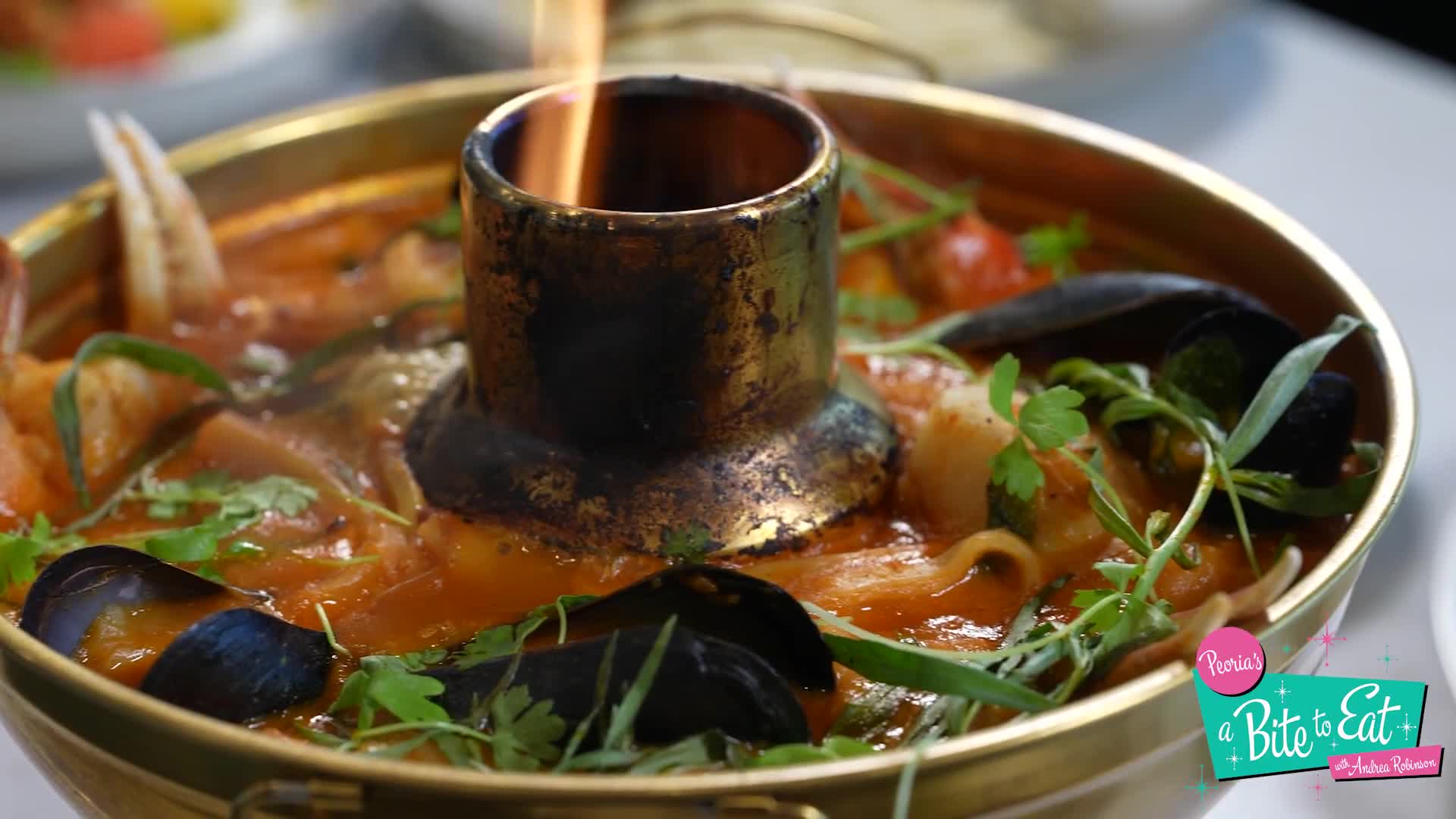 Menu and signature items shown during the segment included a chef’s-whim butter board with Calabrian chiles, honeycomb candy, fresh herbs, local honey and olive oil; a goat-cheese salad with whipped goat cheese, arugula, fennel pollen and heirloom tomatoes; roasted carrots with balsamic, mint and pistachios over goat cheese; a 16-ounce USDA prime ribeye served with Parmesan whipped potatoes and roasted garlic; a seafood hot pot designed for fall and winter; and a banana cake combining rum cake, bananas, caramel, whipped cream and dark chocolate shavings.