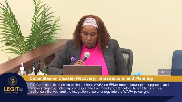 The Virgin Islands Water and Power Authority (WAPA) presented an extensive status update on federally funded recovery, modernization and resilience projects, telling the Committee on Disaster Recovery, Infrastructure and Planning that while major investments are in place, work remains on project execution, vendor payments and procurement.