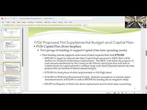Director John Cronin presented the Norfolk County Advisory Board with a first supplemental FY26 request and a proposed capital plan, saying, “we have an FY 25 surplus that totals $2,260,629.”