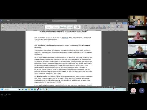 The Consumer Protection Department board voted to adopt draft revisions to its certified public accountant licensing regulations that define an "accounting concentration," clarify education and experience pathways, and revise rules for verifying qualifying experience. The board also approved DCP staff using the draft as interim guidance while the regulations proceed through formal promulgation.