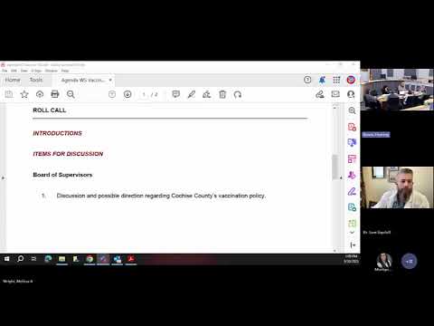 Supervisors of the Board of Supervisors met Sept. 30 in a work session to review a draft county vaccination policy and to hear a guest physician's concerns about emergency-use-authorized vaccines and contact tracing. The board did not adopt a policy; staff said the draft is under review and will be circulated for comment.