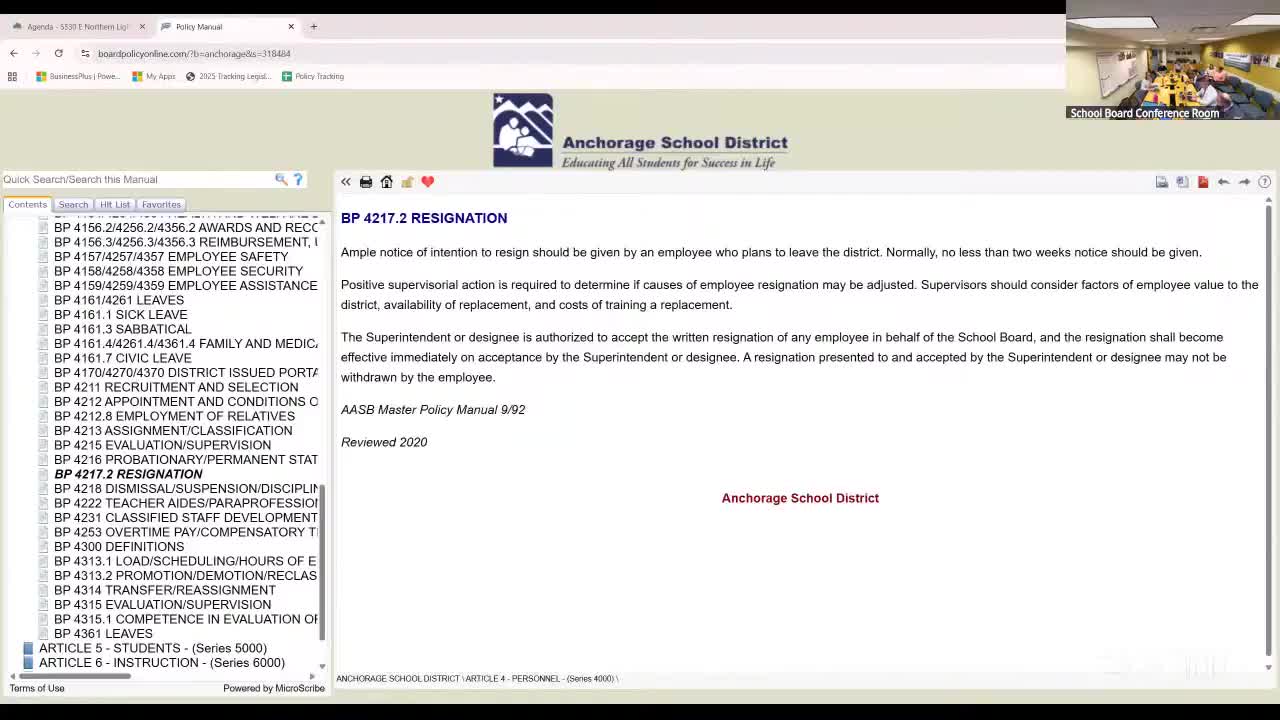 The governance committee on Sept. 25 reviewed policy language that currently states a resignation “presented to and accepted by the superintendent or designated may not be withdrawn by the employee.” Administrators told the committee that current practice sometimes allows employees to rescind resignations on a limited, space-available basis and recommended aligning policy with practice.