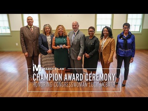 "I am so deeply honored to receive the champion award from Marcy's Law for Georgia because I am so truly committed to be just that," U.S. Rep. Lucy McBath said. McBath recounted the loss of her son Jordan to gun violence in November 2012 and said the experience has shaped her work in Congress. She told the audience she will continue to press for legislation she described as removing barriers to justice for families of homicide victims.